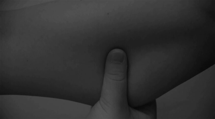 特別演習課題作品。リュミエール兄弟が映画を発明した当時の撮影条件『1分以内, モノクロ, サイレント, 定点撮影, 無編集, 撮影中のモニター確認なし』で映像を撮影した。映画の黎明期における技術的制約の中での映像表現を行う。映像の中で人体の生々しさを表現したいと考え、皮膚を伸ばす、腹部の柔らかさを足の指で押す、骨の凹みを指で捉えるなどの行為をこの方法で撮影することによって、普段見ている人の体とは別の物体として見せることを試みた。