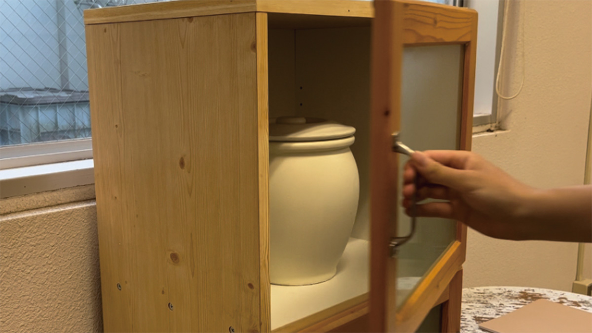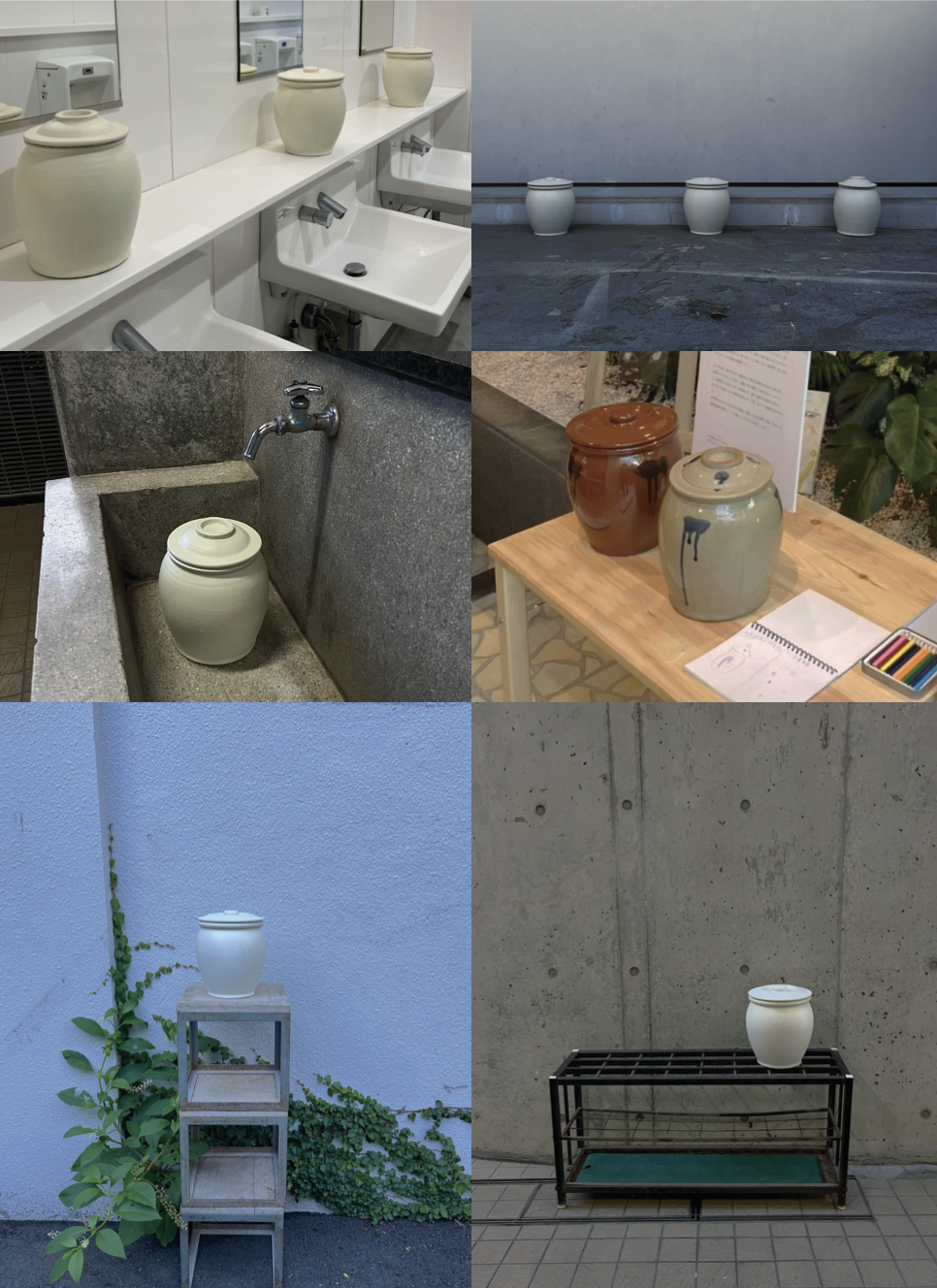 国分寺市内の景観の異なる様々な場所で録音した音声を合わせ壺に入れた。また、壺を市内の公園や駅などに設置し、展示ではそれらのドキュメンテーションとともに棚にしまった。